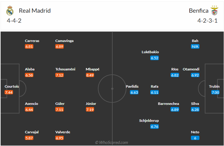 Tỉ lệ kèo Real Madrid vs Benfica
